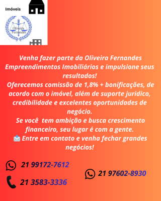 A Oliveira Fernandes Empreendimentos Imobiliários está em busca de parceiros comprometidos para impulsionar a venda e locação de nossos imóveis. Ao trabalhar conosco, você terá acesso a: